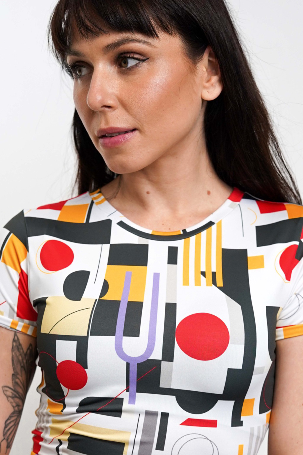 For my work with Yoginess, a Slovak yoga brand, I designed a Bauhaus-inspired pattern. The design uses clean lines, simple shapes, and bold colors, reflecting the minimalist and geometric style of Bauhaus art. This pattern gives their clothing a modern, structured look while keeping a sense of harmony and balance. This project allowed me to explore a classic design style and bring a unique, artistic feel to Yoginess clothing.